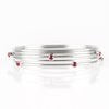 Three shiny silver and two red rhinestone encrusted bangles stack across the wrist for a refined look.